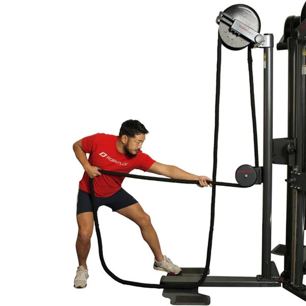 - Removable cushioned seat for sitting and standing rope pulls
