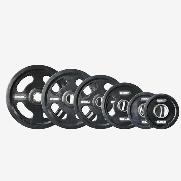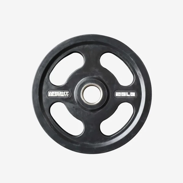 The Wright Rubber Grip Olympic Plates combine classic weight plate functionality with modern convenience and durability. Constructed with a solid cast iron core and coated in high-quality rubber, these plates are built to withstand heavy use while protecting your equipment and floors from damage. The ergonomic Quad-grip design allows for easy handling and quick loading or unloading, making them a versatile choice for any training environment.