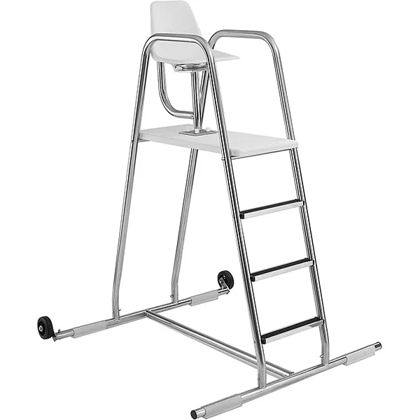 S R Smith portable lifeguard stand features a molded fiberglass seat for increased durability and comfort. Seat support and umbrella holder are constructed of 1.90″ x .065″ T-304 stainless steel. The chair mounting plate is 1⁄4″ x 8″ x 8″. All three pieces are welded together for sturdy support.