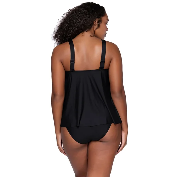 The Sadie Tankini has strapping along the high neckline with a flowy A-line silhouette. Adjustable straps and soft cups make this tankini ideal for anyone seeking comfort and style. Also includes matching colored lining.
