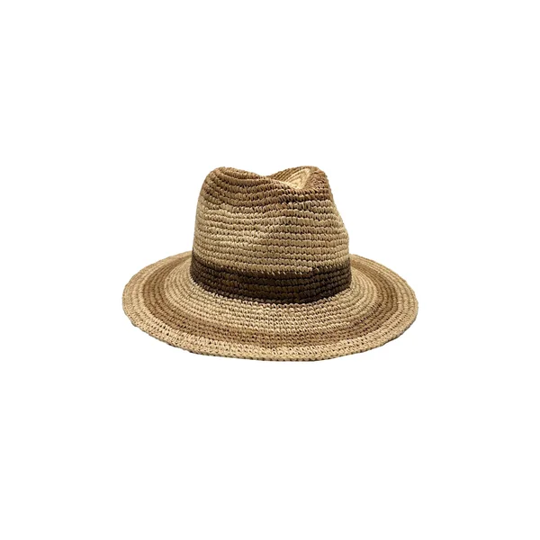Samantha straw fedora features a small brim, two-tone design and contrasting band.