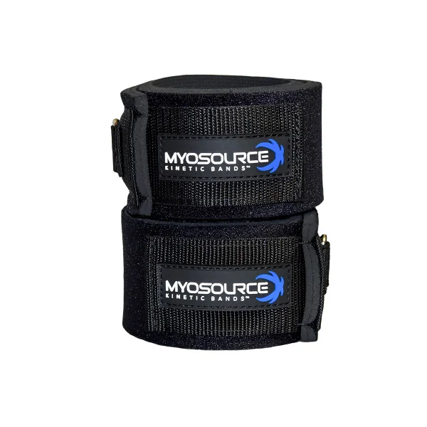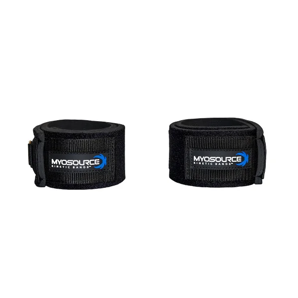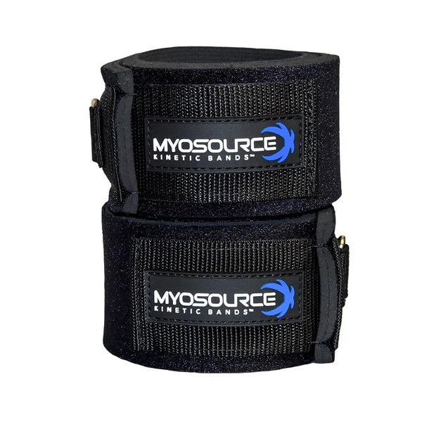 Set includes one left leg strap and one right leg strap with the Myosource Kinetic Bands logo.