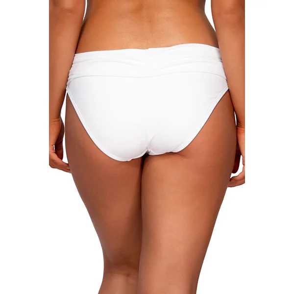 Feel comfortable and secure all day in this fashionable and flattering banded bottom that can be worn for any summer occasion. Features include shirred band with cinched back detail and matching colored lining. Sits straight across the hip. Offers full coverage.