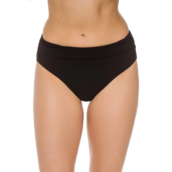 Hipster bikini bottoms with shirred tab sides, offers moderate coverage.