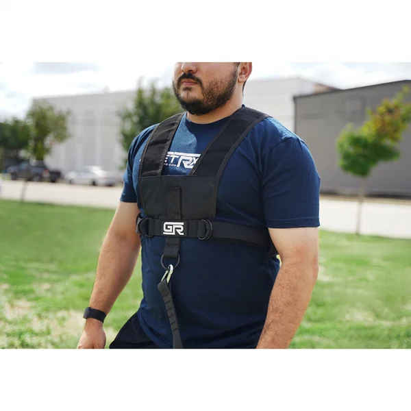 The Shoulder Harness with Lead adds to the versatility of the by giving users more options for pulling exercises and mobility drills using a workout sled. Featuring a 70″ lead that attaches the harness to the sled via two carabiners. The lead gives users enough distance to safely start/stop without having the sled run into them but isn’t so long that extra space is required for use.