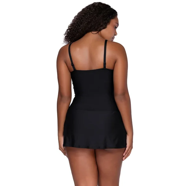 This Sienna Swim Dress is unlike the rest. A feminine sweetheart neckline with a twist front detail and tummy control ruching down the center make this dress an easy choice. In addition, it has smooth side panels, an attached swim bottom underneath, soft cups, and adjustable straps that can be converted to a cross-back.
