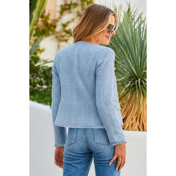 Be the first to review “Soft Blue Boucle Jacket With Embellished Buttons”