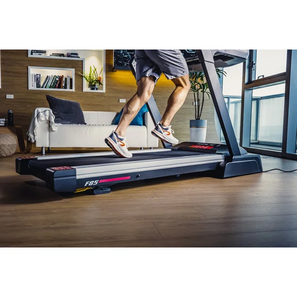 SOLE’s number one seller, the F85 treadmill incorporates all the specs of the F80. This year, we also introduced our new Z-shaped frame, and our highest horsepower motor, a very strong motor with output and performance second to none. The F85 includes the 22″ wide running surface and 2.75″ rollers, extending the effectiveness of the treadmill’s motor.