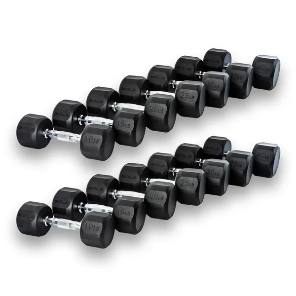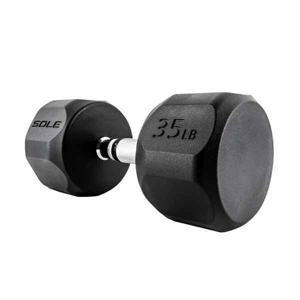 The SOLE SW101 Dumbbell set features a knurled ergonomic handle design and an anti-roll rubber-coated hexagon shape for providing essential grip and security. Full weight sets including two 10, 15, 20, 25, 30, 35 and 40 lbs. dumbbells This dumbbell set is great for resistance training for arms, back, chest, core, and legs.