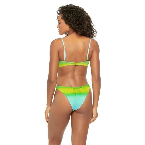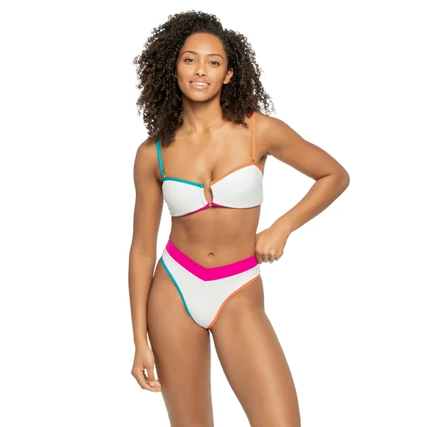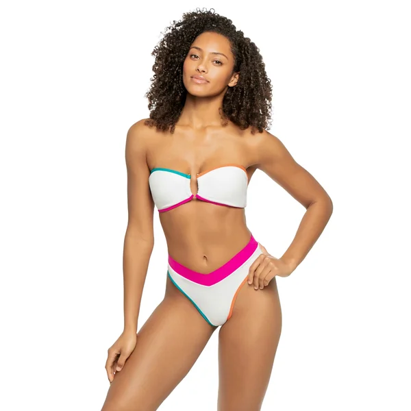 Sorrento ribbed bikini top features colorblock piping and a gold U-wire hardware accent. Offers removable soft cups, adjustable removable straps, and a hook back closure.