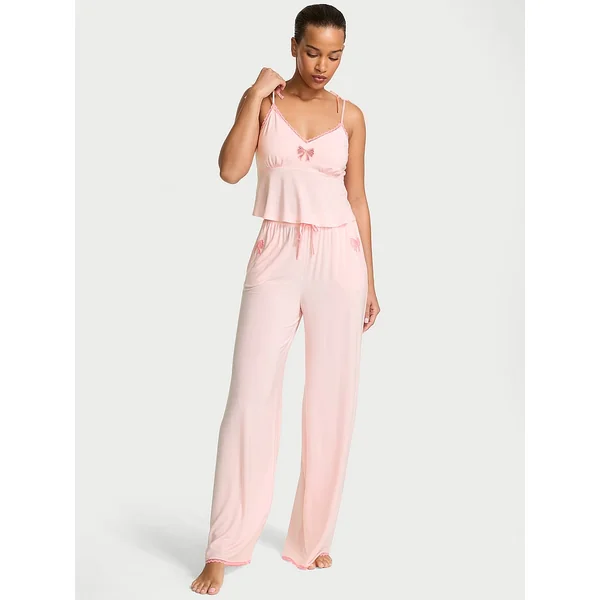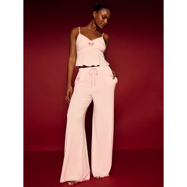 Topped off with lacy bows, this supremely comfy Set is totally holiday-ready. Flowy Pants balance the tie-strap Cami beautifully. Beyond buttery, with a touch of slinky stretch, our ever-popular modal designs are always perfect to give and get.