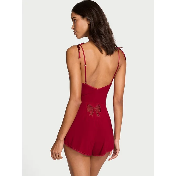 Backed up with a lacy bow, this supremely comfy One-Piece is totally holiday-ready. Beyond buttery, with a touch of slinky stretch, our popular modal designs are always perfect to give and get.