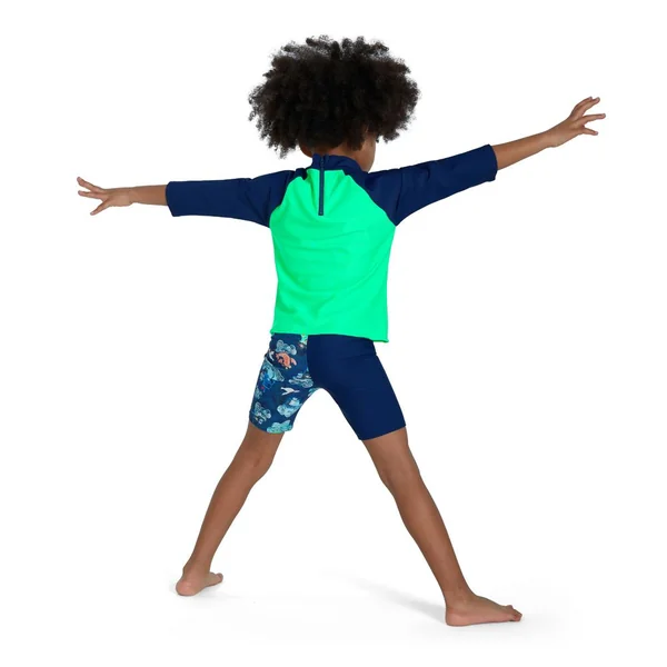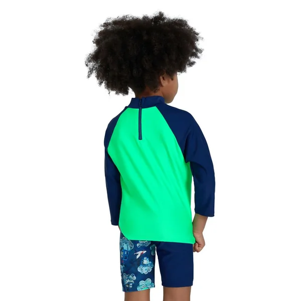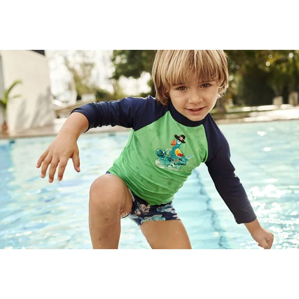 Every swim’s an adventure with our Learn to Swim range. Bold and bright in green and navy, this Long Sleeve Printed Rash Top includes a playful pigeon perched on a cloud. Perfect for sunny holidays and outdoor fun, the top includes UPF40+ fabric sun protection to keep little ones protected in and out of the water. A zip-up back (up to age 4) allows for easy wet-and-dry changing, and the shape-retaining fabric stretches so little bodies can move around without feeling restricted. Made from Endurance10 fabric, which contains Creora HighClo™ for a fit that stays like new for longer.