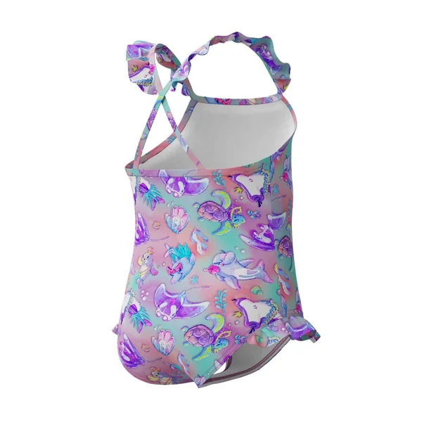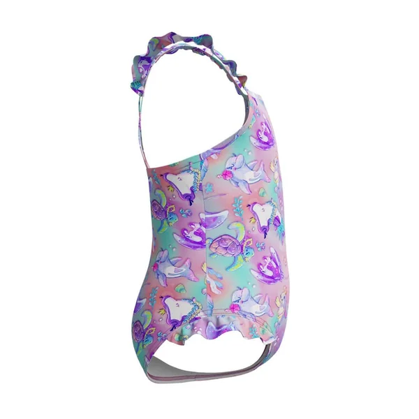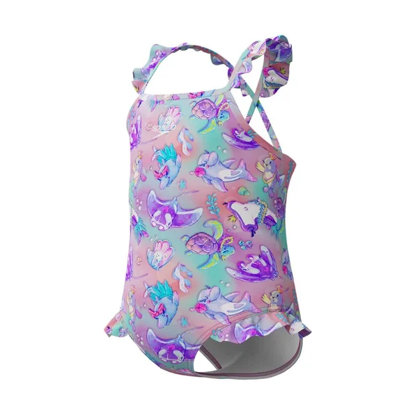 Our playful sea creature-print Thinstrap Crossback swimsuit has summer written all over it. Young children will enjoy the frill detail and can move easily in the cross-back design with thin straps. Keep the fun going for longer with our EnduraBrite fabric, which offers higher chlorine resistance than standard swim fabrics.