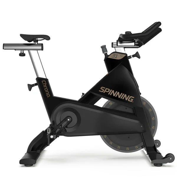 Meet the Chrono®! Spinning® continues to raise the bar for power bikes with the latest innovation in power-meter technology. Designed to last, the Chrono® has upgraded features such as a new magnetic resistance system, Fusion Drive® belt system, sturdy, sweat-resistant powder-coated aluminum frame and 46-lb / 20,9 kg perimeter-weighted flywheel.The NEW Chrono® provides a high-accuracy power measurement with the included SPINPower® Studio console that features a self-powered “always on” multi-color backlit display.