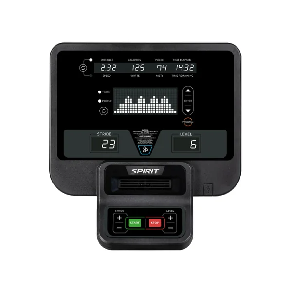 Spirit Fitness elliptical trainers feature an integrated 2-degree inward tilt to make your workout more comfortable. This design puts you in an anatomically correct position. The pedals are also padded, placing less pressure on your feet.[/vc_column_text][/vc_column][vc_column width=”2/3″ css=”.vc_custom_1702603552285{margin-top: 0px !important;margin-right: 0px !important;padding-top: 0px !important;padding-right: 0px !important;}”][vc_single_image image=”93548″ img_size=”full” alignment=”right” css=”.vc_custom_1757075367128{margin-top: 0px !important;margin-right: 0px !important;margin-bottom: 0px !important;padding-top: 0px !important;padding-right: 0px !important;padding-bottom: 0px !important;}”][/vc_column][/vc_row][vc_row full_width=”stretch_row” css=”.vc_custom_1691234986017{margin-bottom: 0px !important;background-color: #e6e6e6 !important;}”][vc_column][vc_empty_space][vc_column_text]BEST-IN-CLASS[/vc_column_text][vc_row_inner][vc_column_inner width=”1/2″][vc_column_text]TECHNOLOGY INTEGRATION