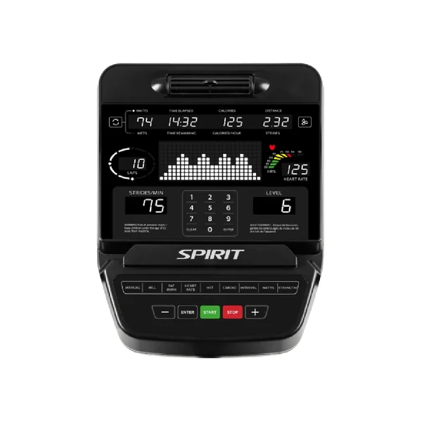 - Console Feedback: Time Elapsed, Time Remaining, Distance, Calories, Calories/Hour, Strides, Strides/Minute, Pulse, Watts, METs, Level, Laps