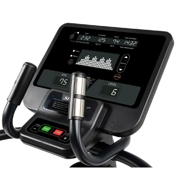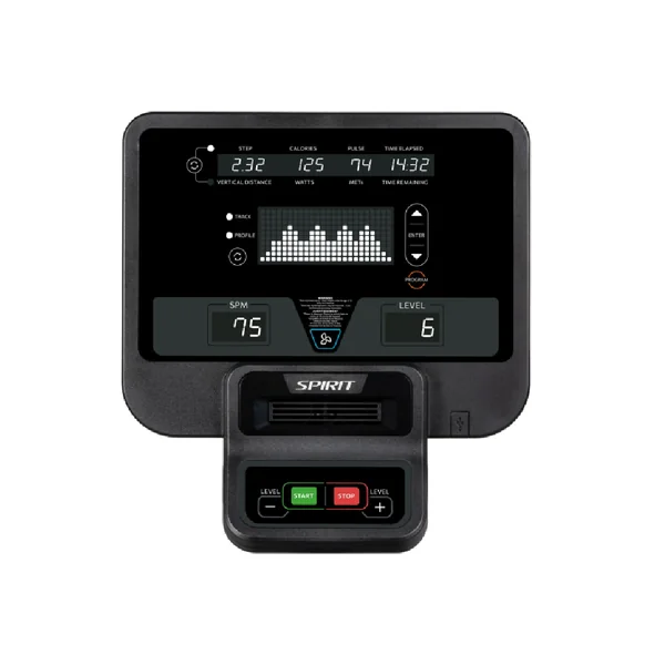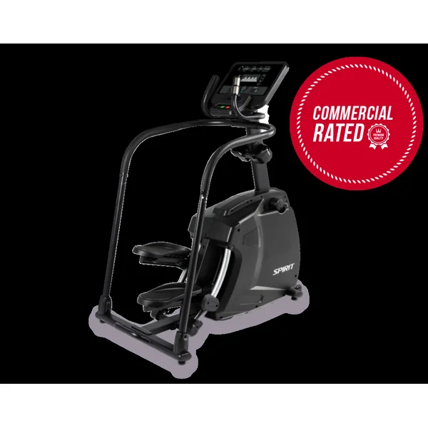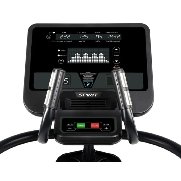 The Spirit CS800 Stepper combines the familiar dependent stepping action with an arched step-rail design and impressive 16” maximum step height for an effective lower body workout. The narrow 2” pedal spacing (Q-Factor), large cushioned pedals, and solid handrail design combine to give you an incredibly comfortable and space-efficient cardio unit.