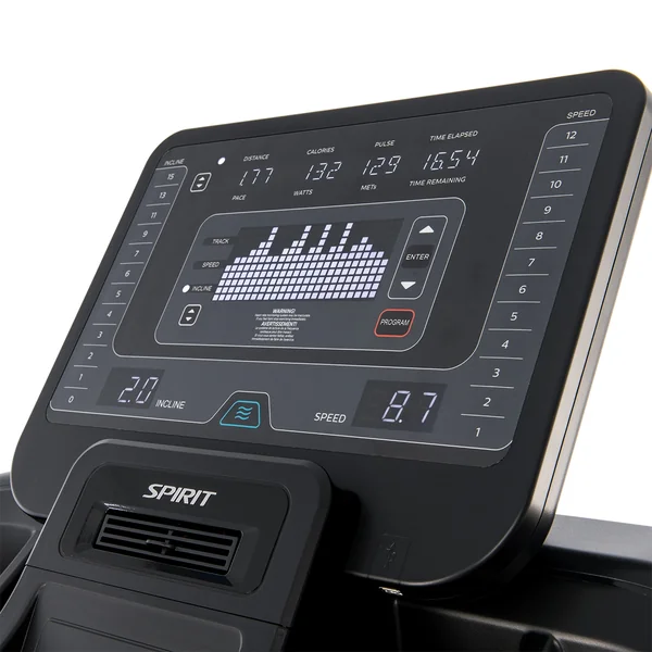 Designed on the muscular CT850 platform, the CT800ENT treadmill includes an impressive combination of functional and technological advancements in a budget friendly treadmill. The oversized 15.6” touchscreen entertainment display allows users to screen mirror from their phone so they can watch whatever they want. Pre-loaded apps also give users the ability to stay entertained with popular streaming, news, and social media content. And if that isn’t enough, the facility can enable the ability to watch cable TV through an HDMI and cable box connection. . The USB charging port, multiple storage trays, cooling fan, and user-intuitive design appeal to a wide range of users. Backed by an impressive warranty and weighing in at over 380 lb, this machine is truly heavy duty and packs a load of premium features.