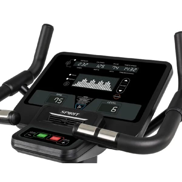 [vc_row][vc_column width=”1/2″][vc_custom_heading text=”FEATURES” font_container=”tag:h2|font_size:45|text_align:left|color:%23441265″ use_theme_fonts=”yes”][vc_column_text]Spirit CU800 Upright Bike Features: