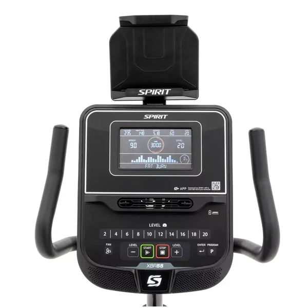 Our most popular bike, the XBR55 recumbent bike sets the standard for value and performance. Our bright 7.5” multi-color ClearView™ console keeps you engaged and informed of the metrics you care about most, including a heart rate graph to help you stay in your zone. Enjoy the convenience of an in-console USB charging port, built-in Bluetooth speakers, and an adjustable cooling fan. A variety of preset programs, including a goal-oriented Time, Calories, and Distance Series, means you can customize the training program for your next race, and convenient handlebar pulse sensors ensure you stay in your zone. With a 24 lb flywheel and 20 levels of magnetic resistance, you will stay challenged during every workout session.