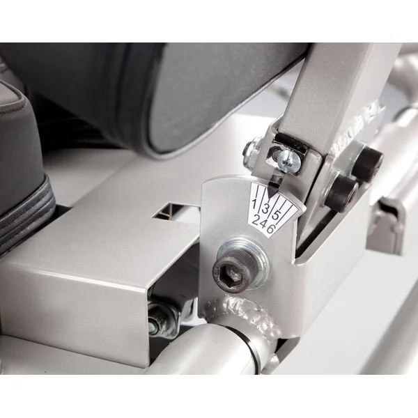 All seat and pedal crank adjustments have numbered indexing for consistent patient set-up from visit to visit.