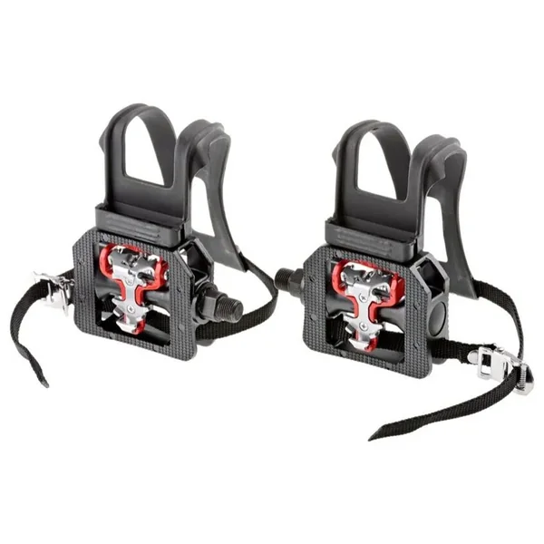 - Pedals have standard toe cage and strap with optional dual function pedals