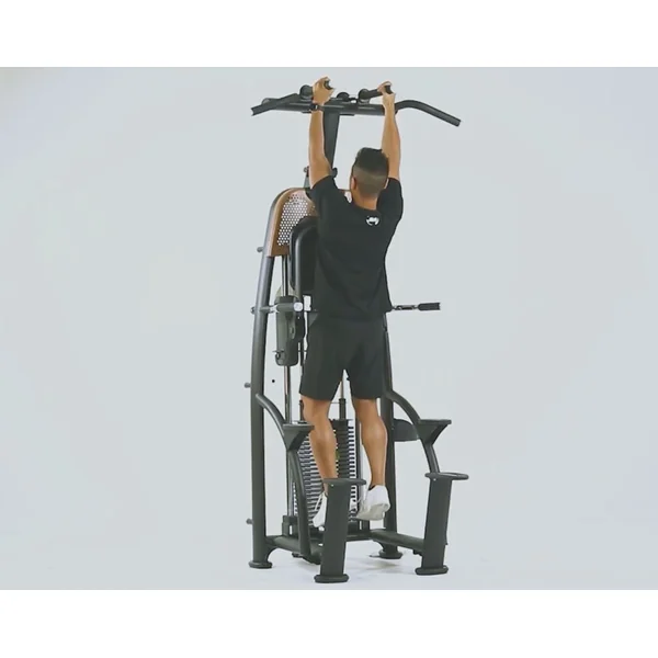 - Dip bars and straight pull-up bars fold out of the way for greater accessibility