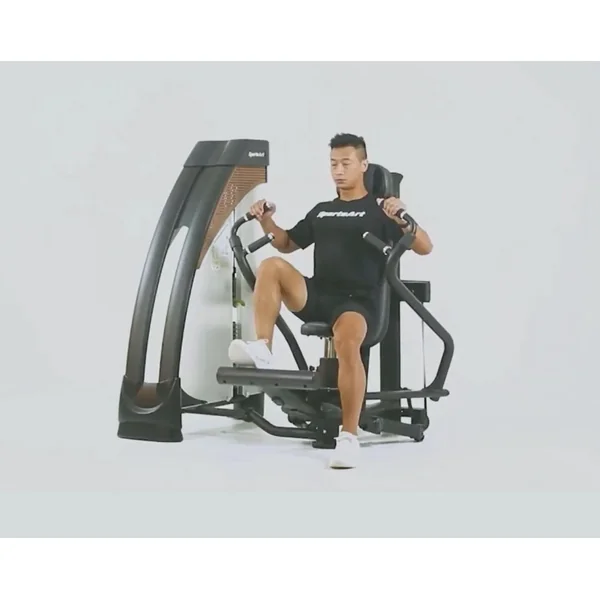 - Independent converging press arms offer ergonomic motion and balanced muscle engagement