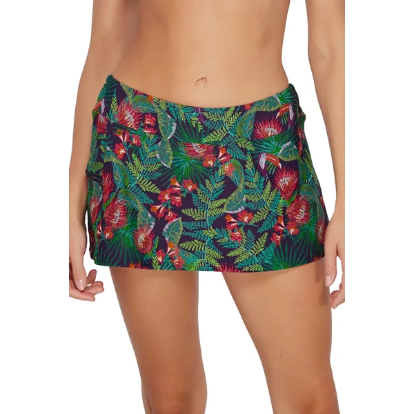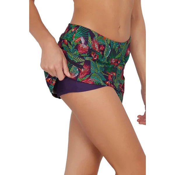 Sporty swim skirt will become one of the most versatile pieces in your swimwear collection. This skirt is ideal for women who want more coverage along with functionality. Featuring hidden attached shorts and a wide waistband, it will keep you comfortable on those busy summer days. Also includes a side zipper pocket and a mid-rise fit.