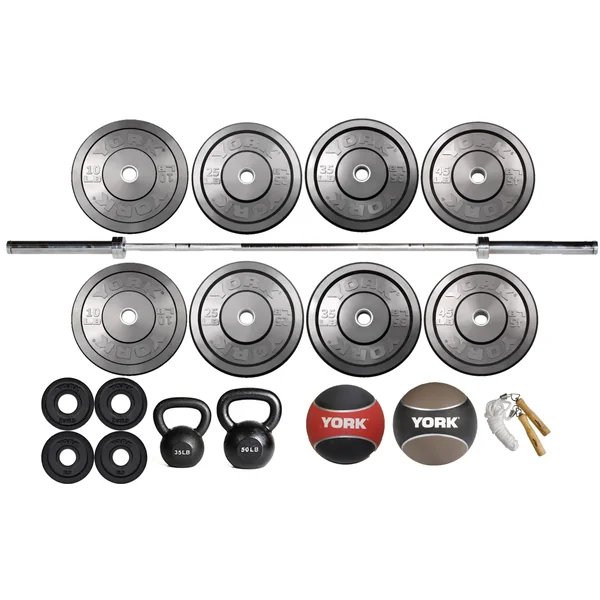 The York Starter Garage Gym Package has everything you need to set up the perfect home gym. The set includes: