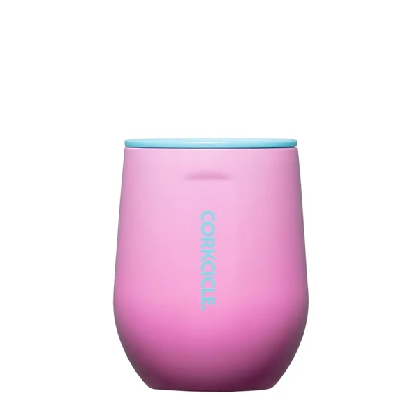 Stemless cup features a triple insulated 12oz stainless steel cup with a sliding shatter proof lid. Offers easy grip flat sides, and a non-slip silicone bottom. Keeps things cold for 6 hours, hot for 3 hours.