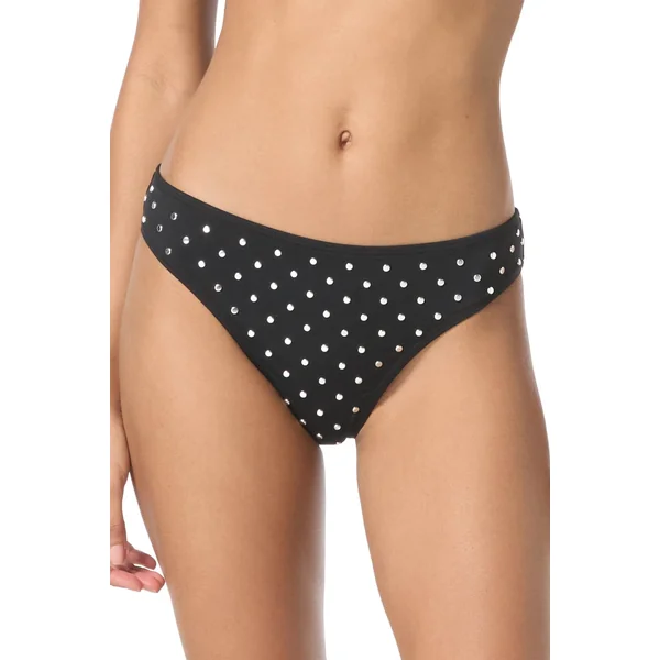 Bikini bottom features stud details and offers moderate bottom coverage.
