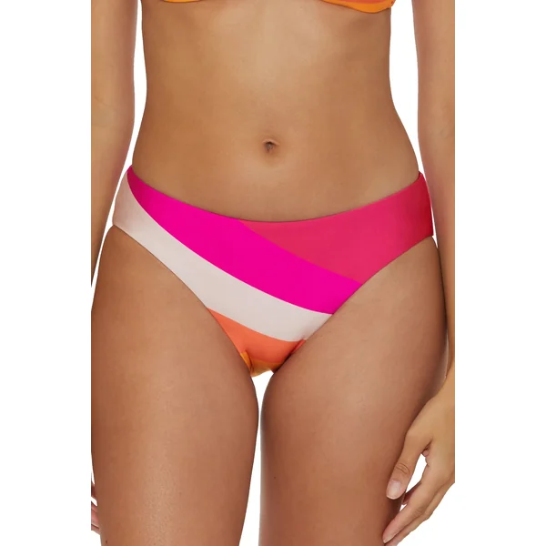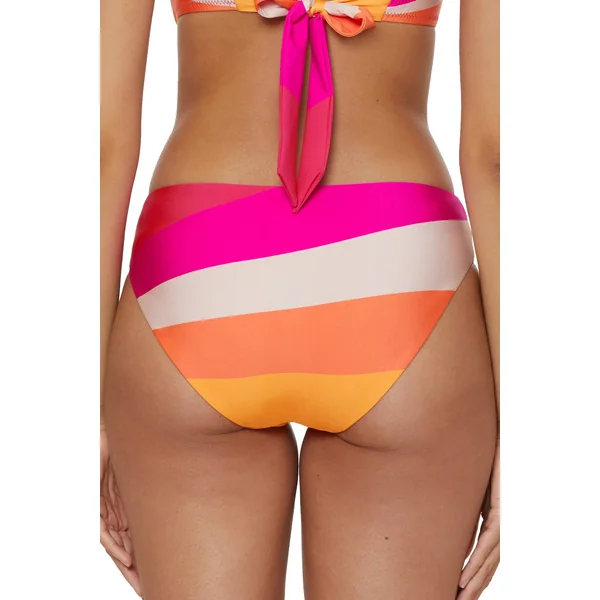 Bikini bottom features striped print and offers moderate coverage.