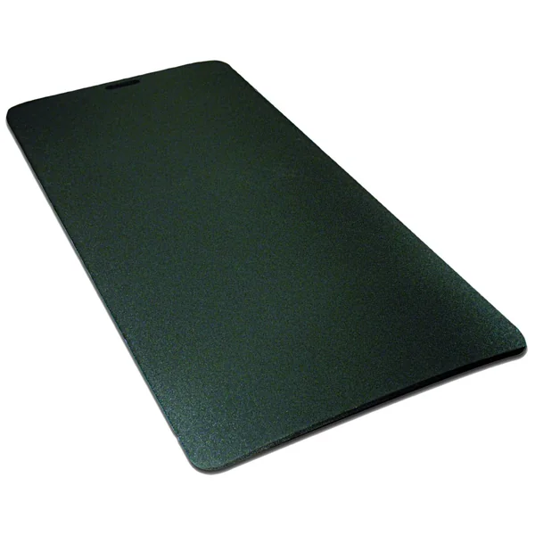 Improved popular, inexpensive floor work mats. One layer of 2 lb high density cross-linked foam. Black, no covering.