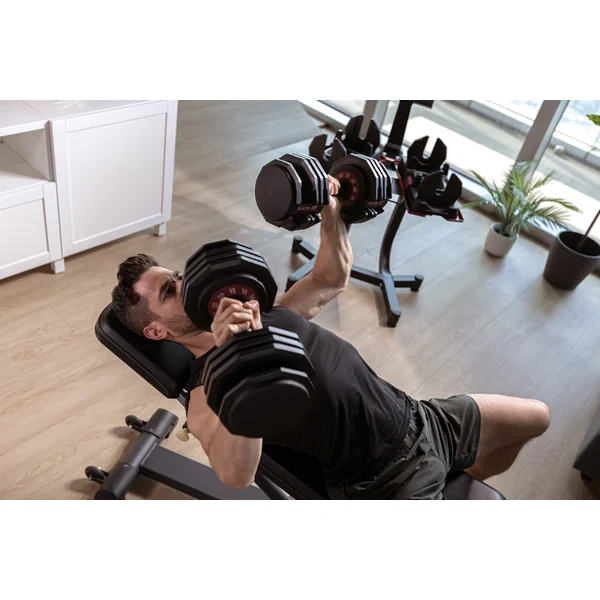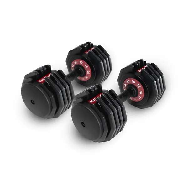 No home gym can be complete without a pair of our SW155 Adjustable Dumbbells. Experience a versatile, space-saving workout with our top-of-the-line dumbbells that can be easily adjusted from 5lbs to 55lbs, thus giving you endless workout options. Amp up your strength and tone your muscles with ease from the convenience of your own home!
