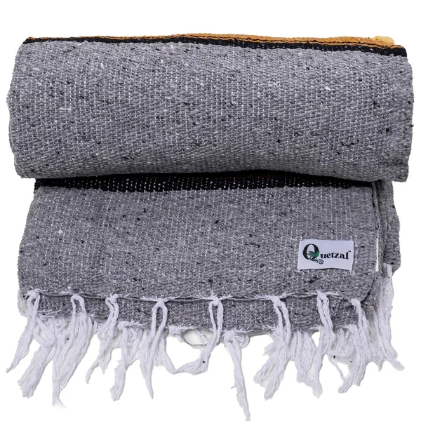 Add a splash of culture and comfort to your space with this 4-pack of Quetzal Mexican Yoga Blankets. Designed with fresh colors and patterns exclusive to this collection, these blankets are both beautiful and practical. Whether you use them as a throw, yoga prop, picnic companion, or decor piece, each blanket brings warmth, style, and versatility. Crafted from reclaimed fibers, they’re built to last—and they only get softer with each wash. Every piece is one of a kind, combining handmade charm with dependable comfort.
