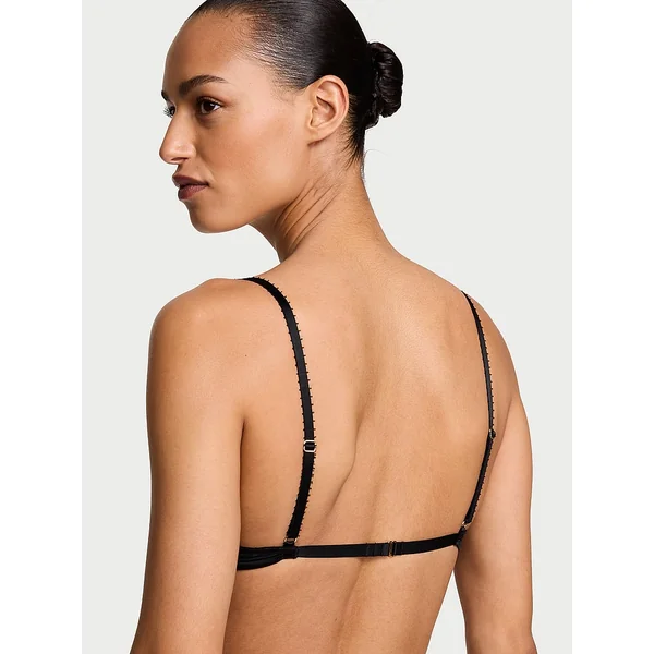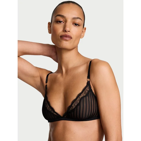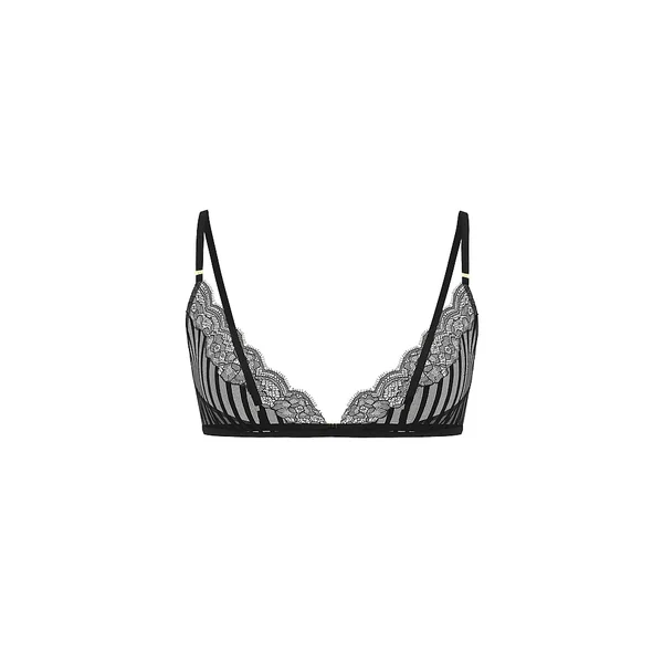 Peak girly-glam: This dainty Triangle Bralette is cut from sheer mesh with a sexy fishnet pattern, then exquisitely embroidered with a bevy of coquette-chic bows all along the low-cut neckline.