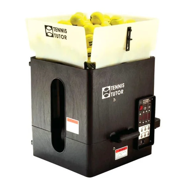 You can set Tennis Tutor Plus to repeat shots you need to practice, or to oscillate and direct shots randomly across the court. Tennis Tutor also features an exclusive anti-jam ball feeding mechanism, and And with the towing handle extended, it tows just like luggage. When you get to the court, the ball hopper opens in seconds to hold 150 balls, which is more than two standard pick-up baskets full of balls. Tennis Tutor has a built-in battery charge indicator that politely beeps when there is only 30 minutes of battery charge left.