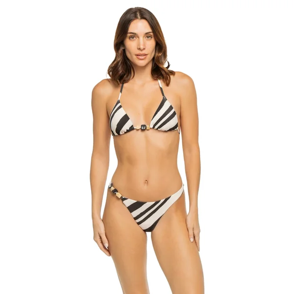 Terra textured bikini top features monochrome stripe pattern and recycled resin bead details. Offers removable soft cups and adjustable neck and back ties.