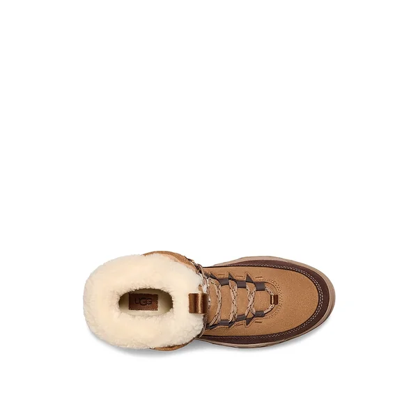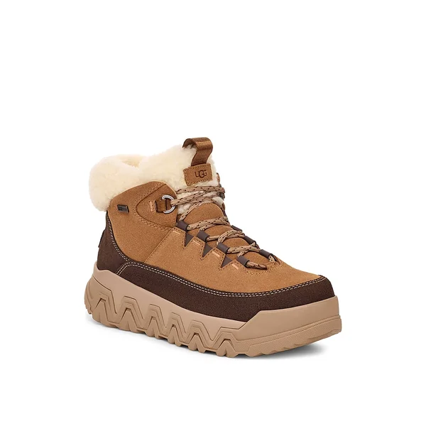 The TerreTrail Cozy Lace is designed with waterproof suede and a curly faux-fleece collar from recycled fibers that serves timeless chilly season style. Immerse yourself in warmth with the soft faux-fleece lining and UGGplush sock lining.