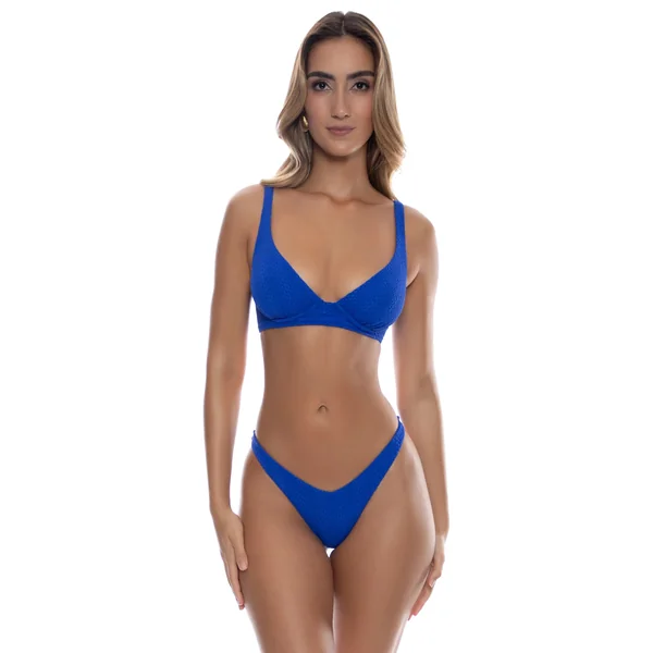 Textured bralette bikini top offers underwire, adjustable shoulder straps and adjustable crisscross straps at the back.