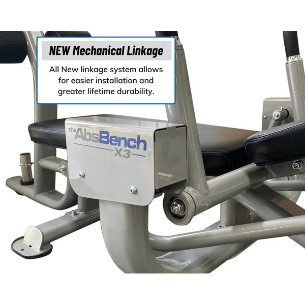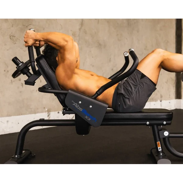 The plate loaded AbsBench X3 allows for progressive exercise and increased intensity with a training range of 12-52 lbs top and 13-53 lbs bottom.