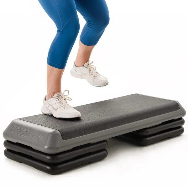 A classic addition to any fitness room, this durable polyethylene step is adjustable from 4”H to 6”H and 8”H. The platform features shock-absorbing, nonslip ribbed rubber on the surface and nonskid rubber feet for stability and floor protection. It can also be used as a muscle-sculpting bench.