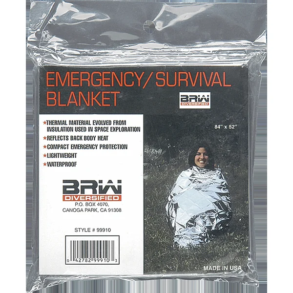 Evolved from insulation used in space exploration, this emergency survival blanket is made of thermal material that reflects and retains 90% of body heat. Dimensions: 52″ x 84″; Weight: 6 oz.