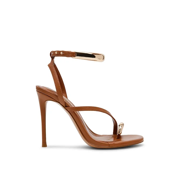 Step into style with the TIA stiletto heel. With daring gold hardware accents and a strappy design, this shoe will elevate any outfit. Add some bling to any look.
