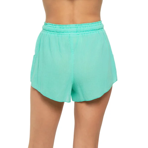 Breathable lightweight shorts offer elastic waist with drawstring tie and side seam pockets.