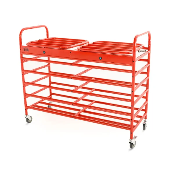 These extra-strong carts are made of 1-1/4″ powder-coated steel tubing with added welding for lasting performance. They feature an upgraded and safer gas hinge that prevents the lid from closing unintentionally. It will stay open until it is purposefully pushed down. A built-in lock-and-key system ensures that you remain in control of the cart at all times, and no one can tamper with equipment when not in use. The Indoor Cart has four 4″ dia ball-bearing swivel casters (2 locking), while the All-Terrain version packs two 4″ dia ball-bearing swivel casters and two 12″ dia all-terrain wheels. 58”L x 24”W x 44”H; 105 lb.