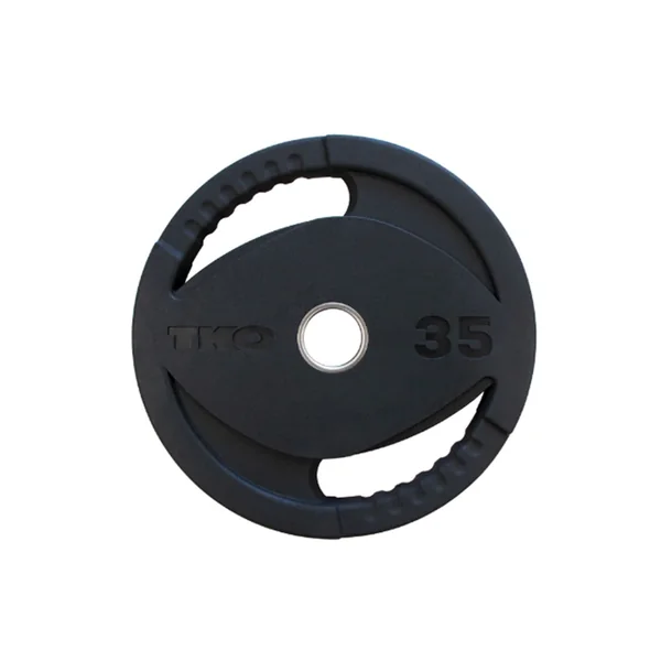 TKO Olympic Rubber Grip Plate provides years of trouble free performance without cracking, fading, or damage to floors and equipment. Solid steel insert ensures a precision fit for a more effective workout tool.
