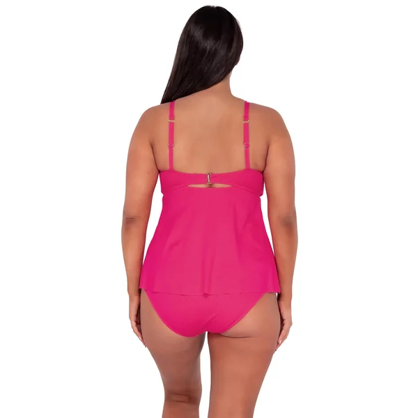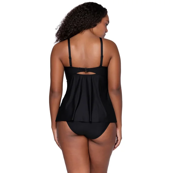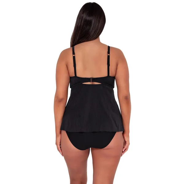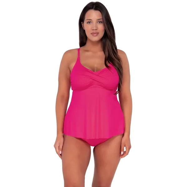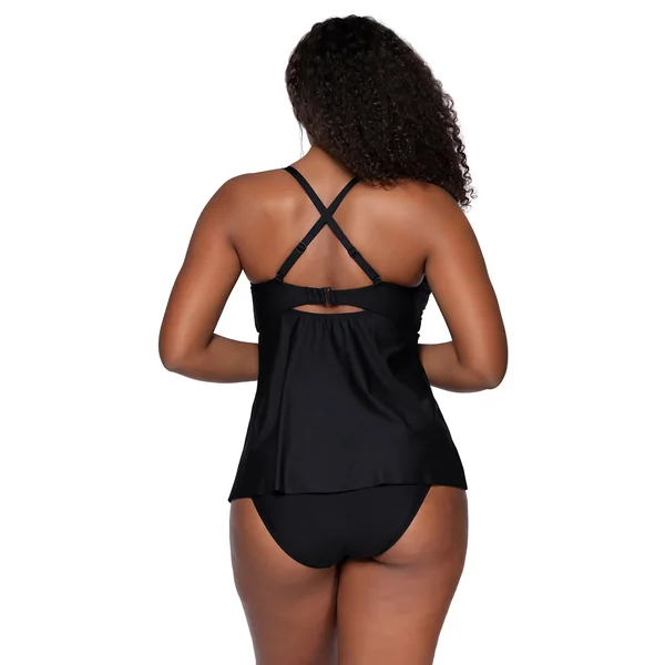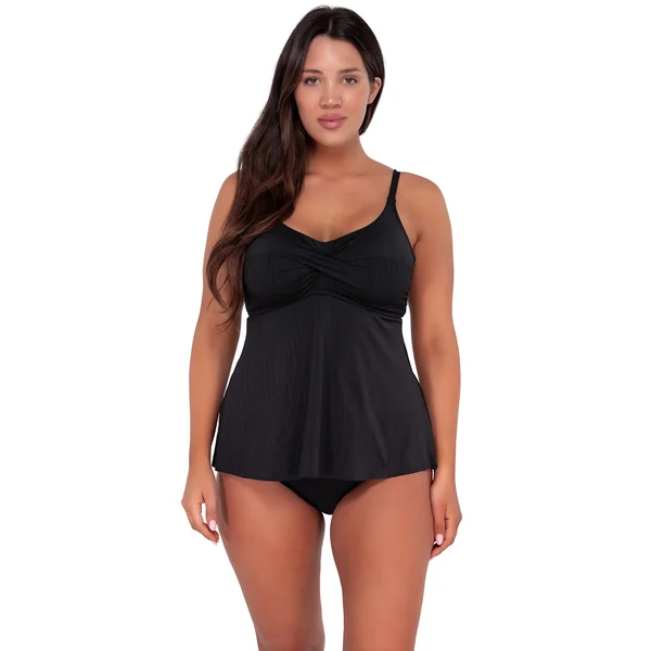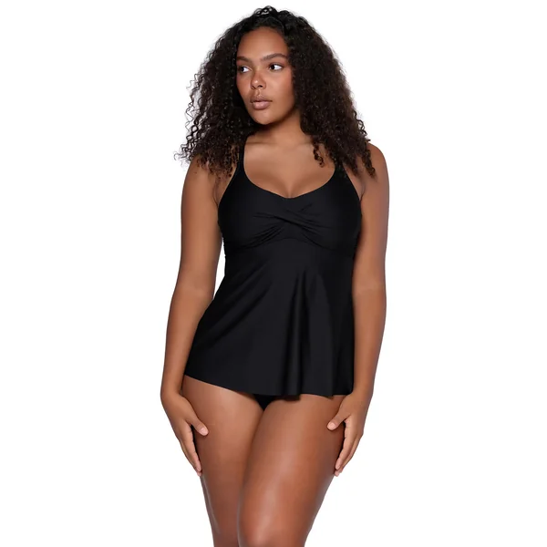 The Tori Tankini is the full coverage option for everyone that loves our Iconic Twist Bandeau. The delicate shirring and extravagant twist bodice are contrasted by a flowy, loose-fitting body. It also features removable cups, adjustable straps, convertible crossback, a hidden bra hook and eye closure, and boning.